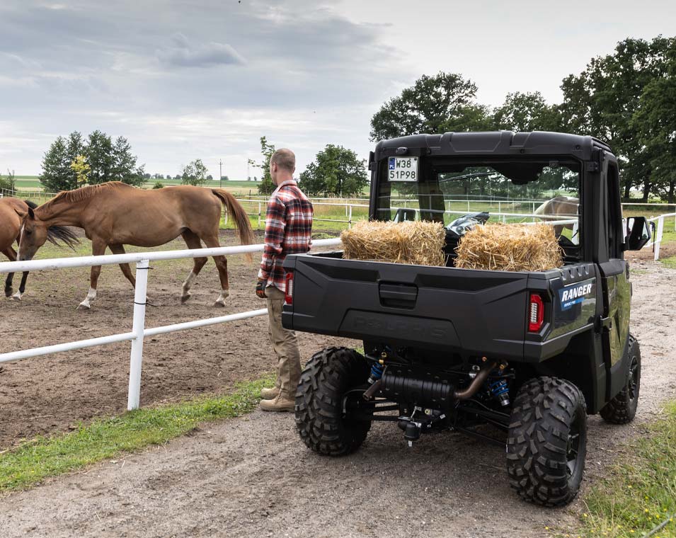 Le RANGER SP 570 est conçu pour maximiser votre productivité au quotidien. Grâce à sa benne basculante à assistance, chargez et déchargez vos fournitures en un clin d’œil, sans effort. Sa transmission intégrale à la demande vous permet de franchir les terrains accidentés avec une adhérence optimale, pour que rien ne vous ralentisse.