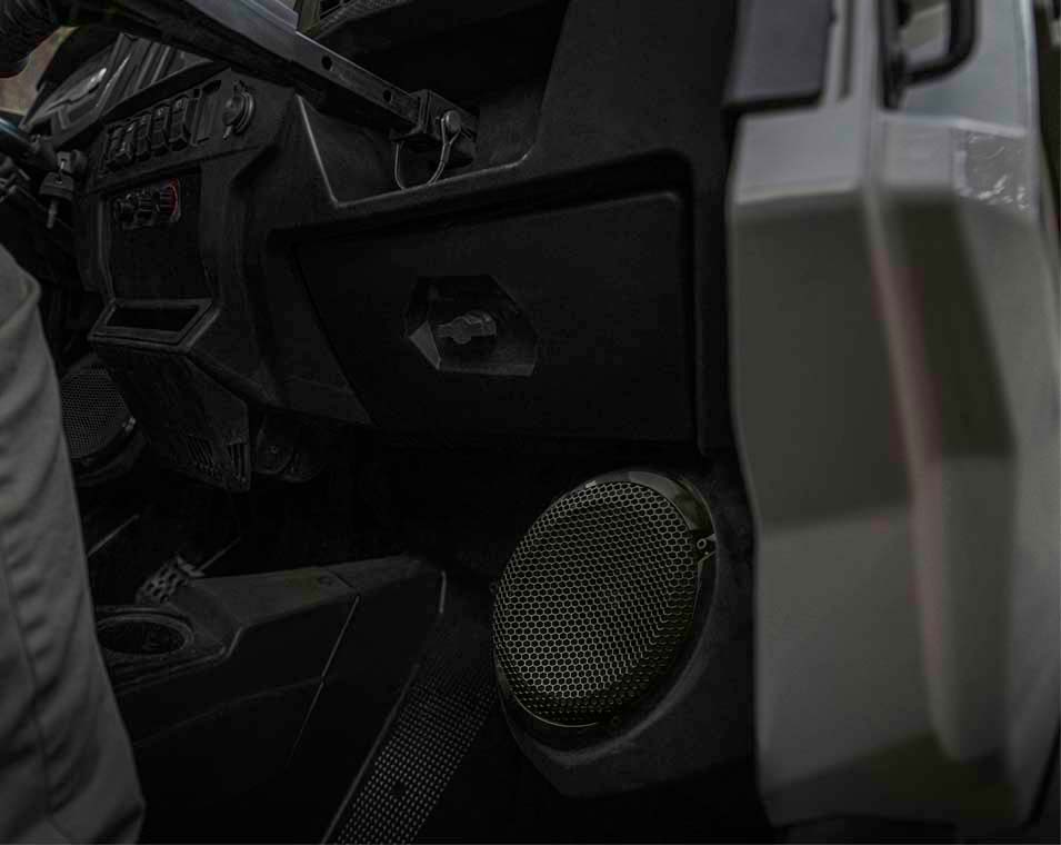 Tableau de bord à indication numérique avec écran LCD 4", Direction assistée, différentiel arrière verrouillable, demi-portes, indicateur de vitesse, odomètre, tachymètre, compteur kilométrique journalier, compteur horaire, voyant de feux de route, indicateur de rapport, jauge de carburant, témoins d’avertissement (température, batterie), prise C.C.